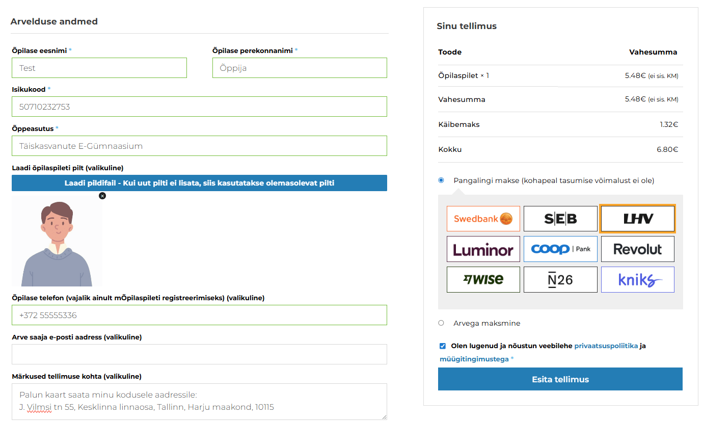 - Vajuta nuppu “Esita tellimus” ja tasu kaardi loomis- ning saatmiskulud